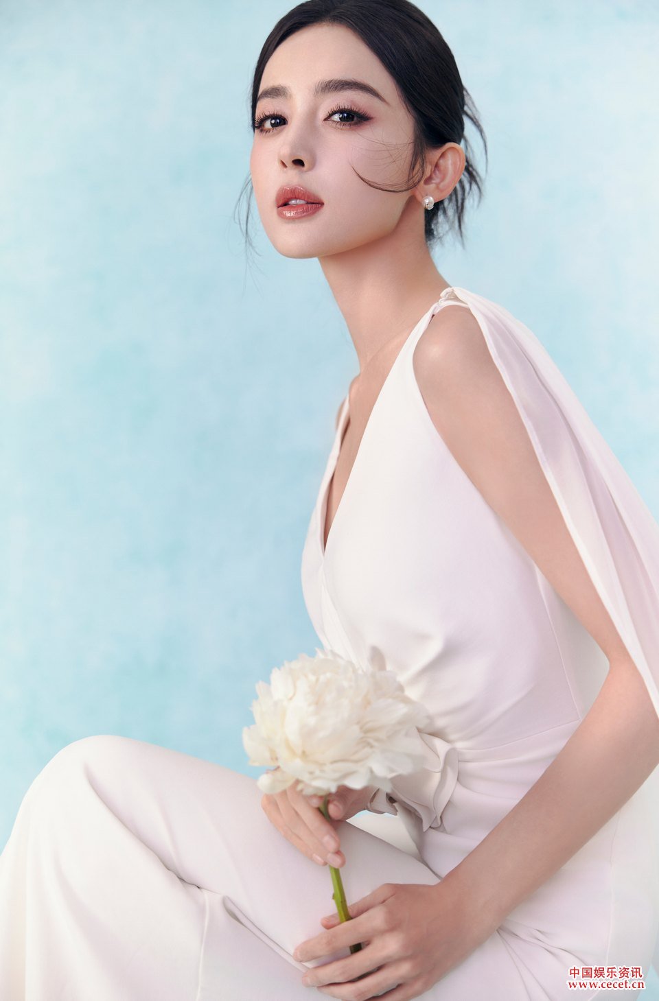 古力娜扎裙摆飘逸清澈透明 纯白映衬如雪肌底