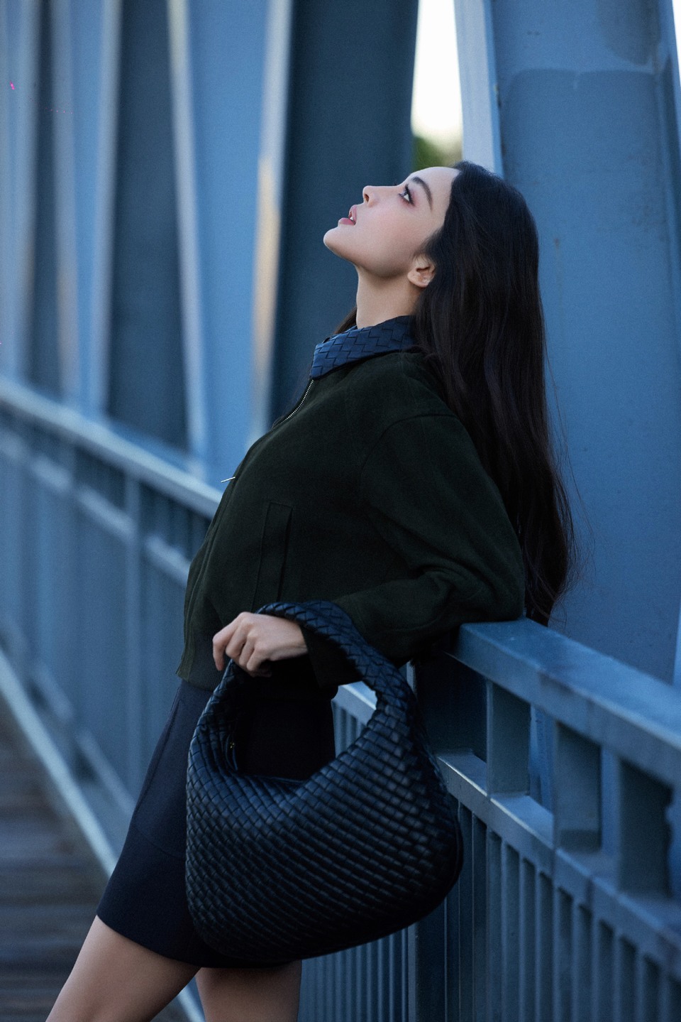 古力娜扎站在街头人来人往 冷空气和暖阳并存