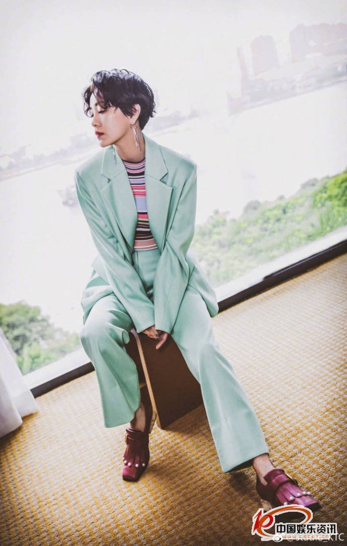 郭采洁短发红唇写真照 细白脖颈气质迷人