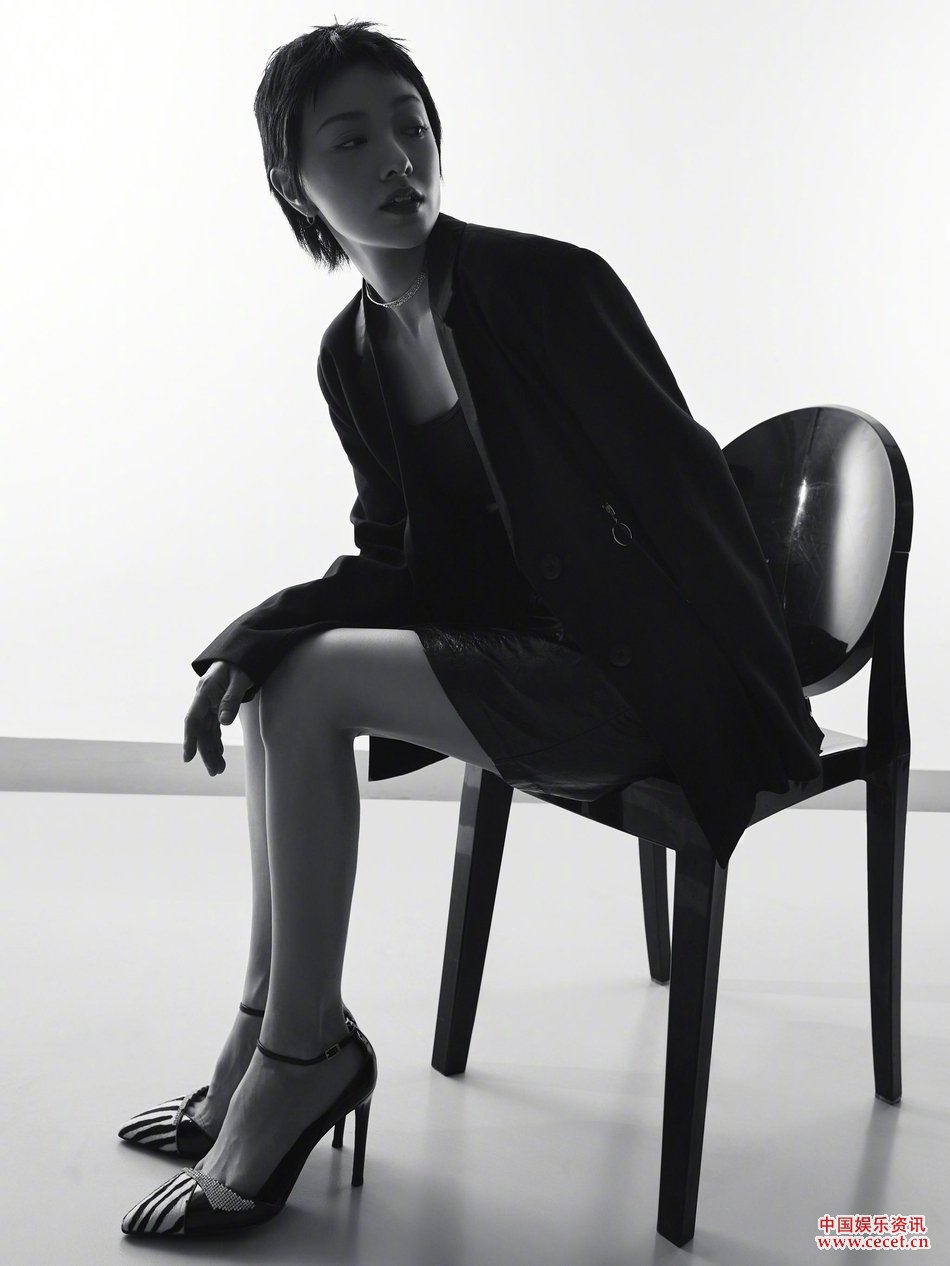 郭采洁黑白写真 黑色西装外套秀出修长美腿