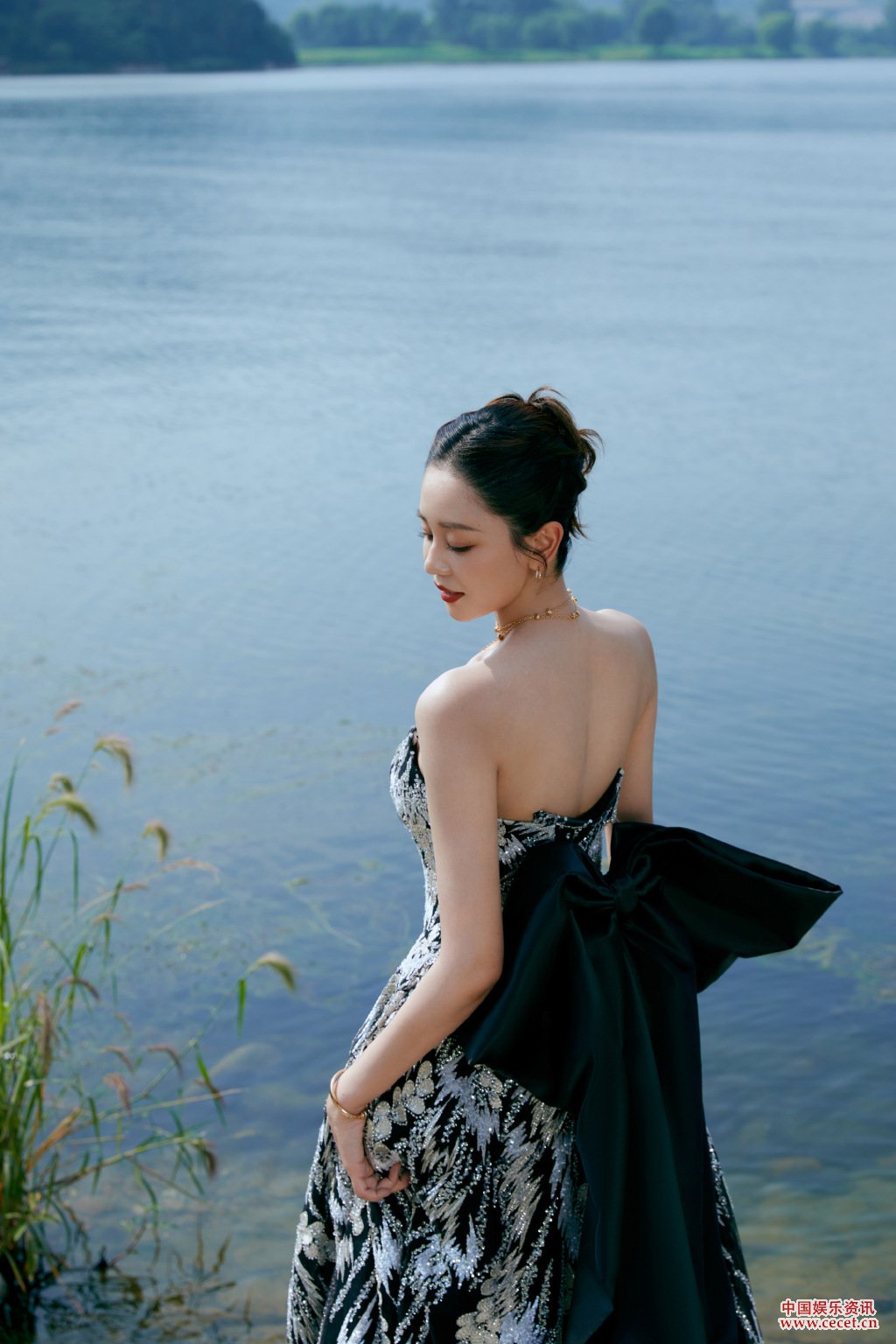 海陆黑底银羽抹胸礼裙 山水同色怡然自得