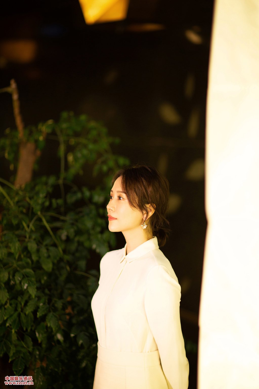 海清白色连衣裙美照 展示秋日里的成熟优雅