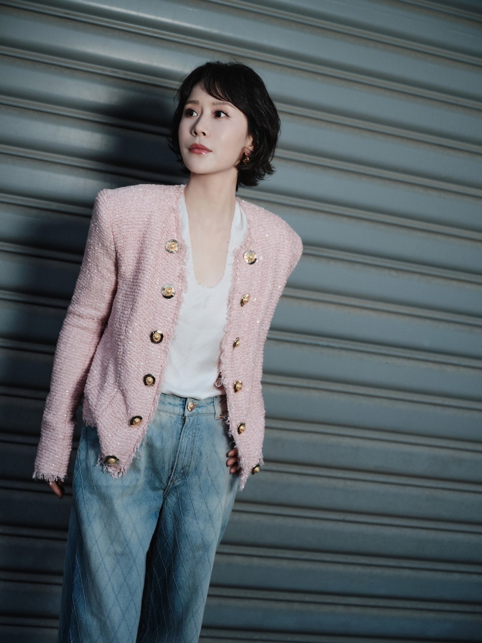海清粉色夹克搭配复古牛仔 温柔与力量同频共振