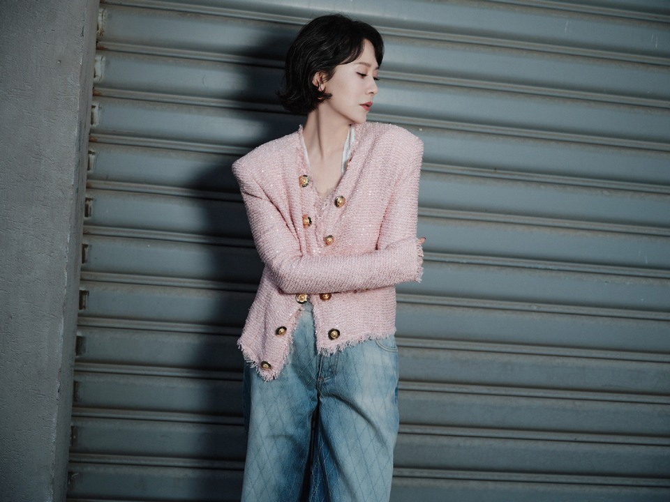 海清粉色夹克搭配复古牛仔 温柔与力量同频共振