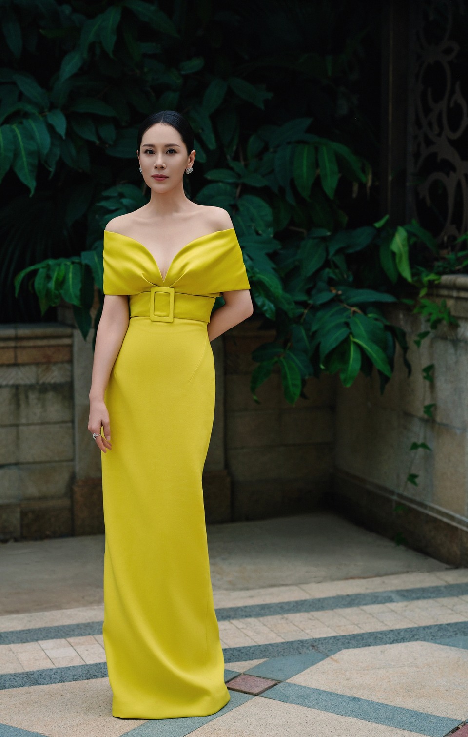 海清明亮黄色抹胸长裙 映衬着知性与优雅