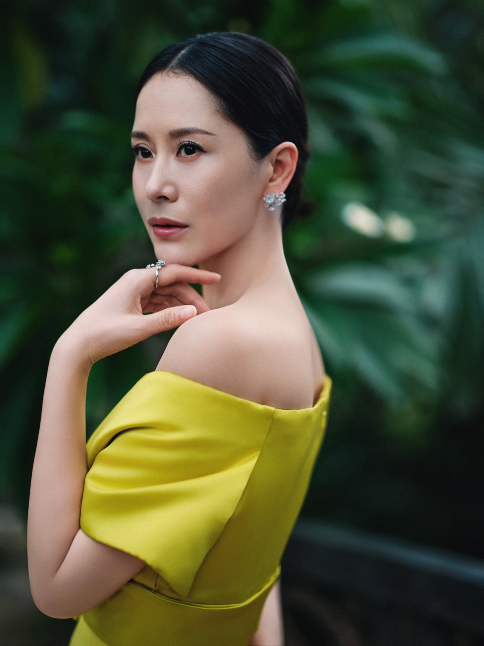 海清明亮黄色抹胸长裙 映衬着知性与优雅