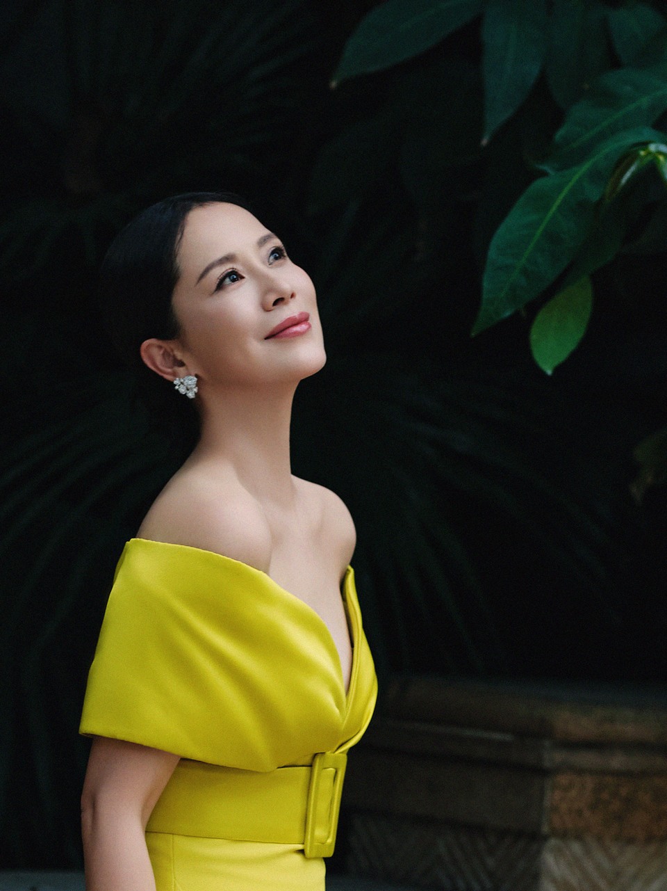 海清明亮黄色抹胸长裙 映衬着知性与优雅