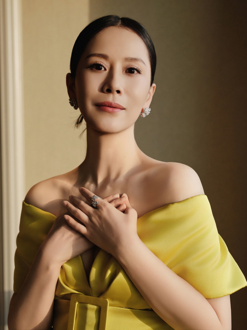 海清明亮黄色抹胸长裙 映衬着知性与优雅
