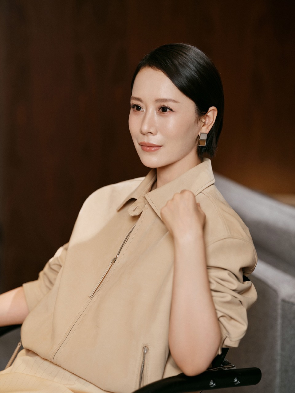 海清极简利落的米色系套裙 展现出别具一格优雅与温和
