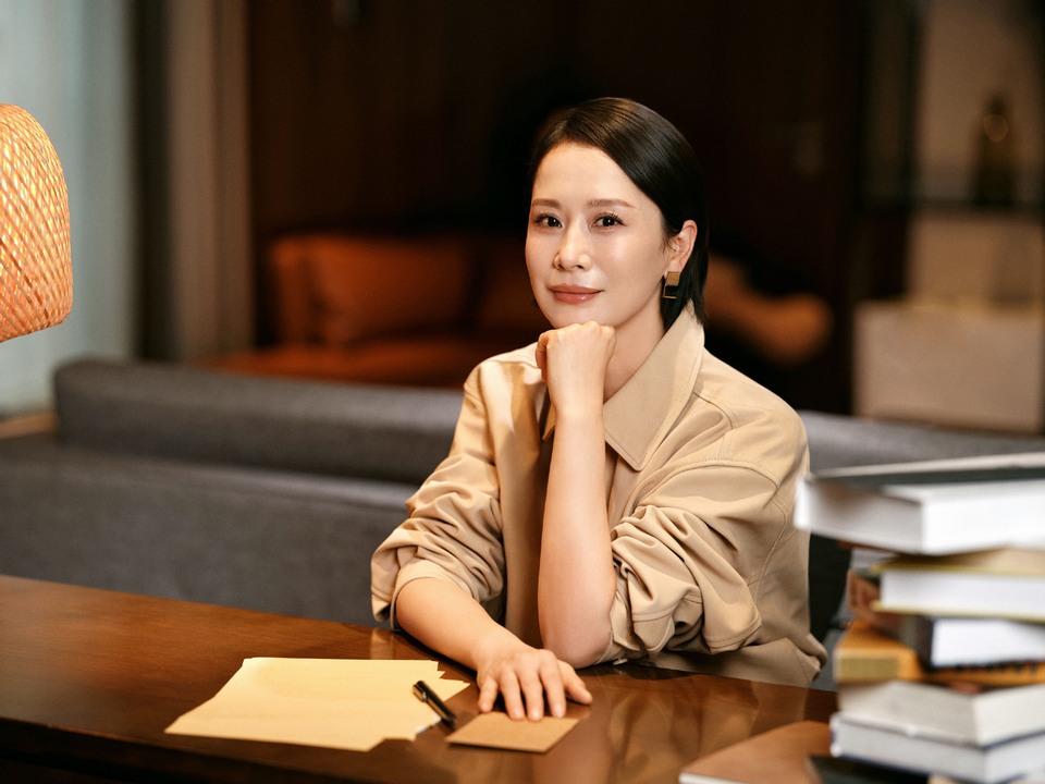 海清极简利落的米色系套裙 展现出别具一格优雅与温和