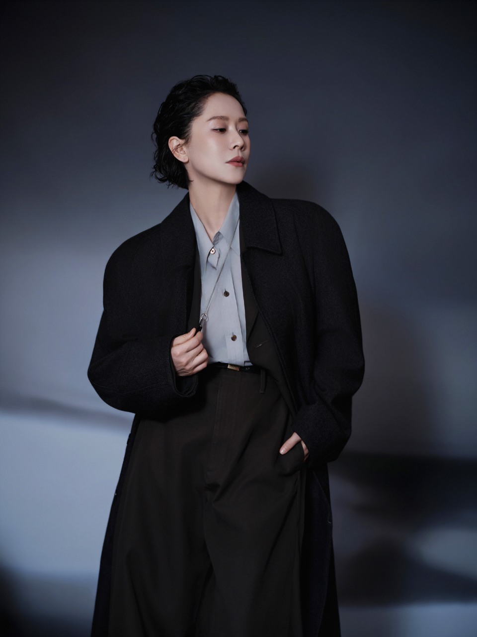 海清墨绿色西装 以极简线条与中性色调书写自信与坚定