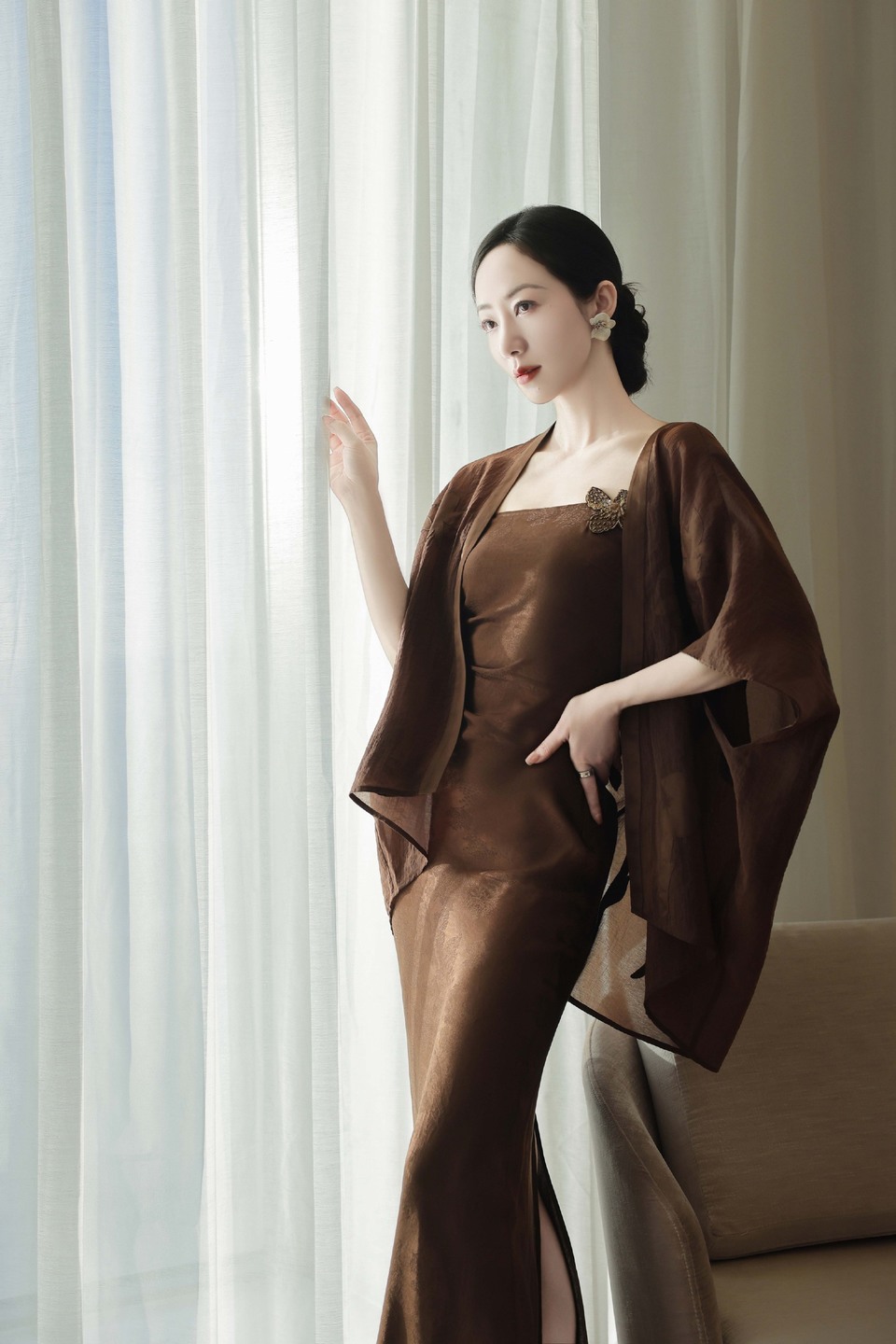 章若楠黑色纱裙温婉优雅