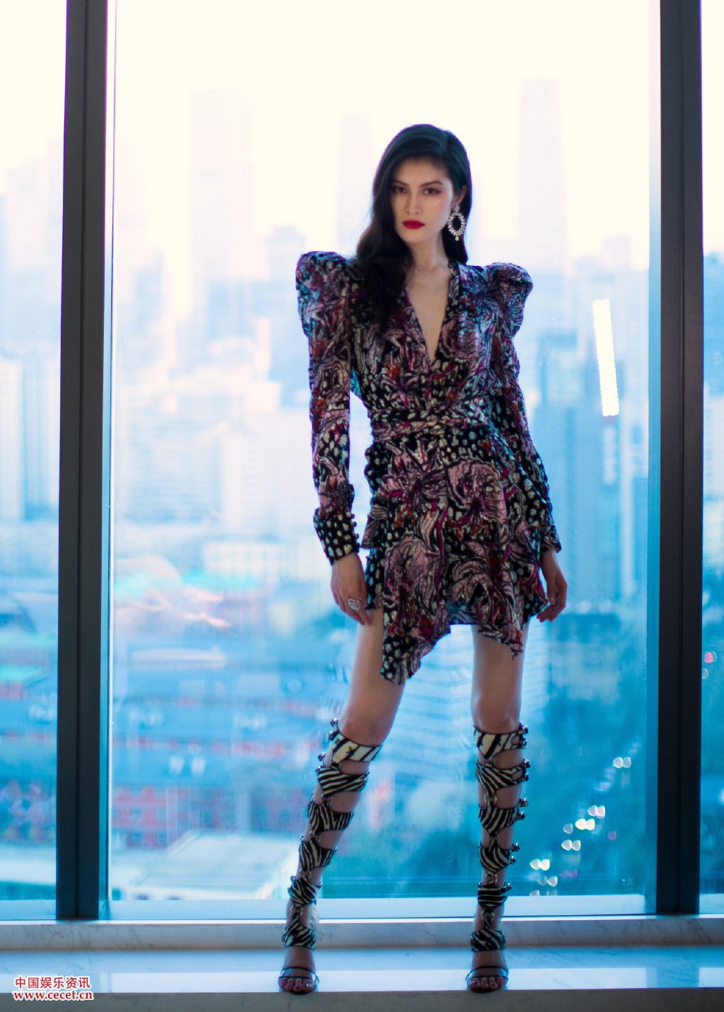 何穗镂空长靴连衣裙照 波浪卷发率性又不失风韵