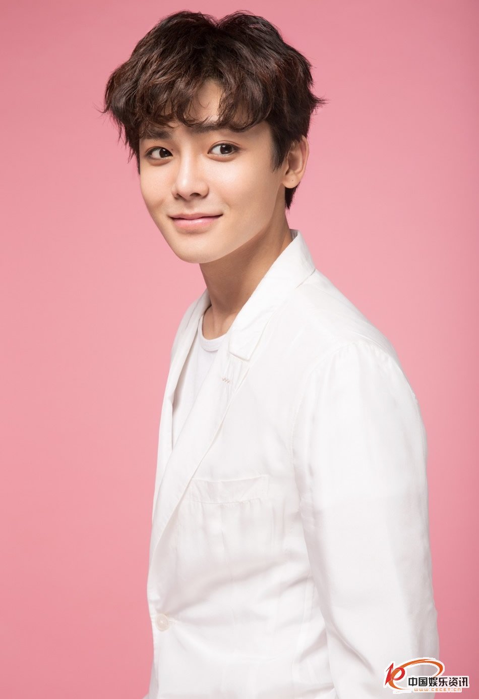 侯明昊以梦幻粉为背景 俨然梦幻中的白马王子