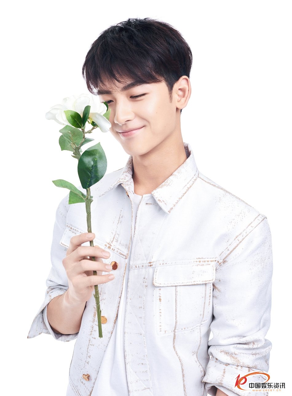 黄俊捷手持栀子花 面容纯真笑容温暖画风纯美