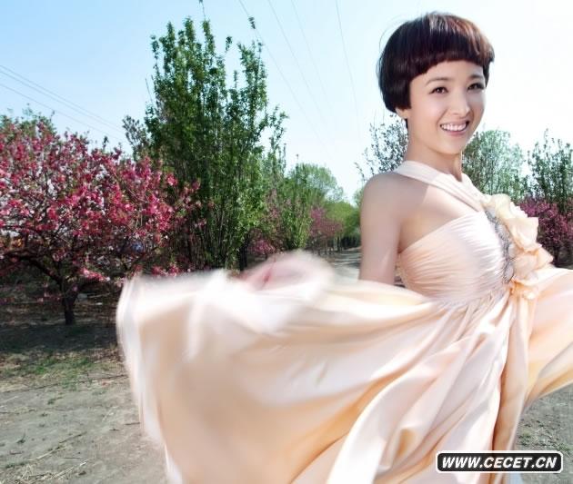 黄曼最新夏日写真推出 身着流行裸色蓬蓬裙