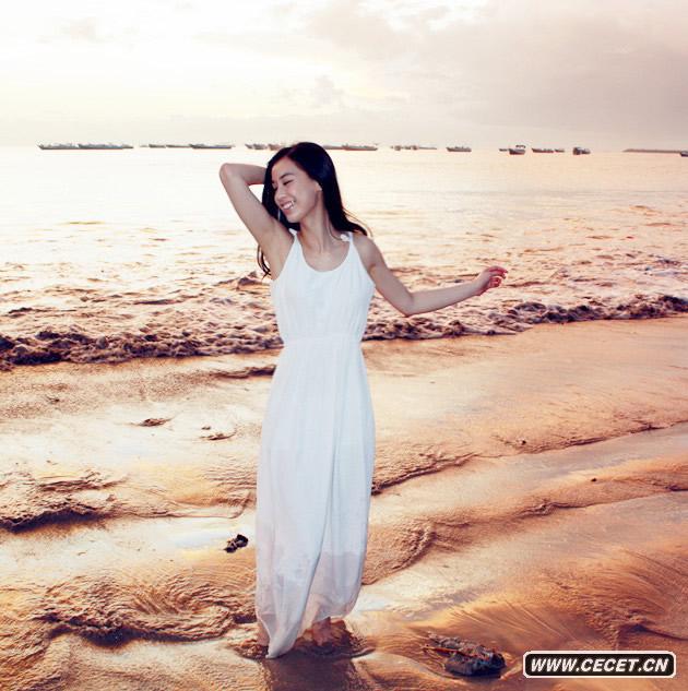 黄圣依赴巴厘岛取景,夕阳美景加上长发飘逸、白裙纯美的佳人可谓是美不胜收。