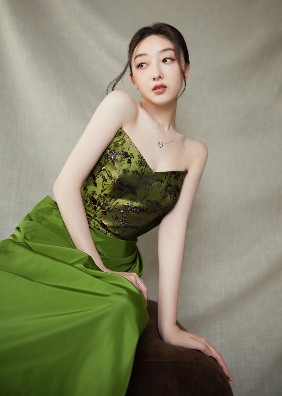 蒋梦婕身着花枝绿意长裙 感受夏日的浓情与曼妙