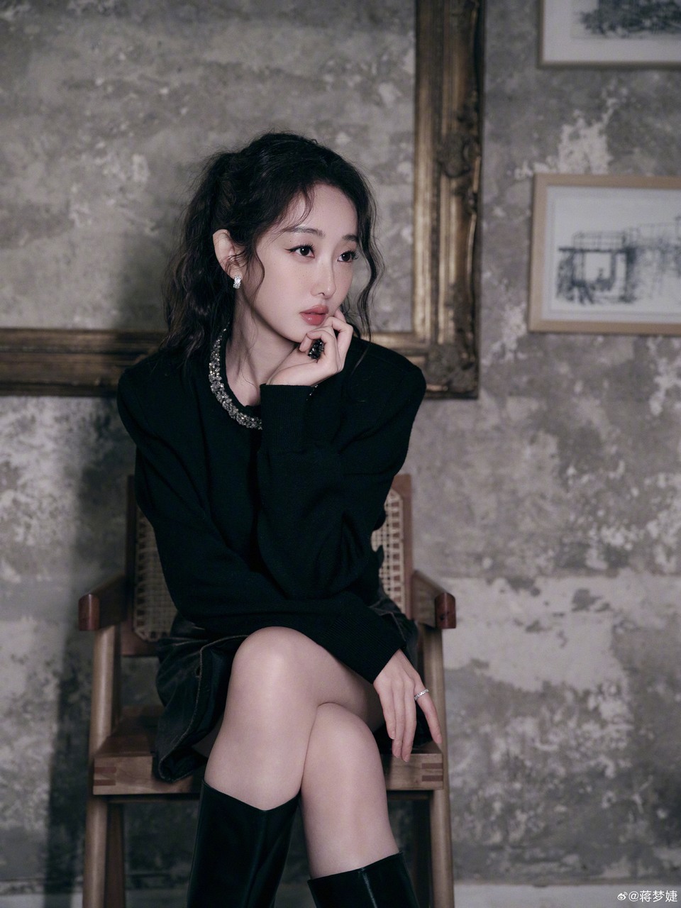 蒋梦婕演绎黑白复古风 眸光虚实碰撞流转