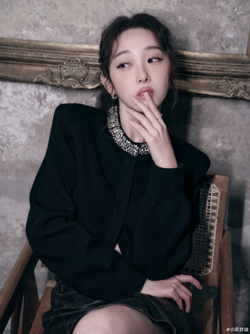 蒋梦婕演绎黑白复古风 眸光虚实碰撞流转