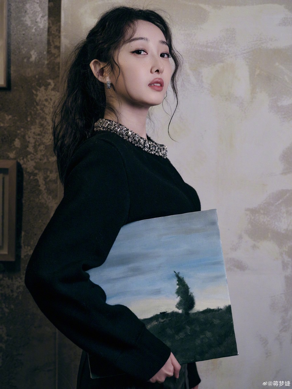 蒋梦婕演绎黑白复古风 眸光虚实碰撞流转