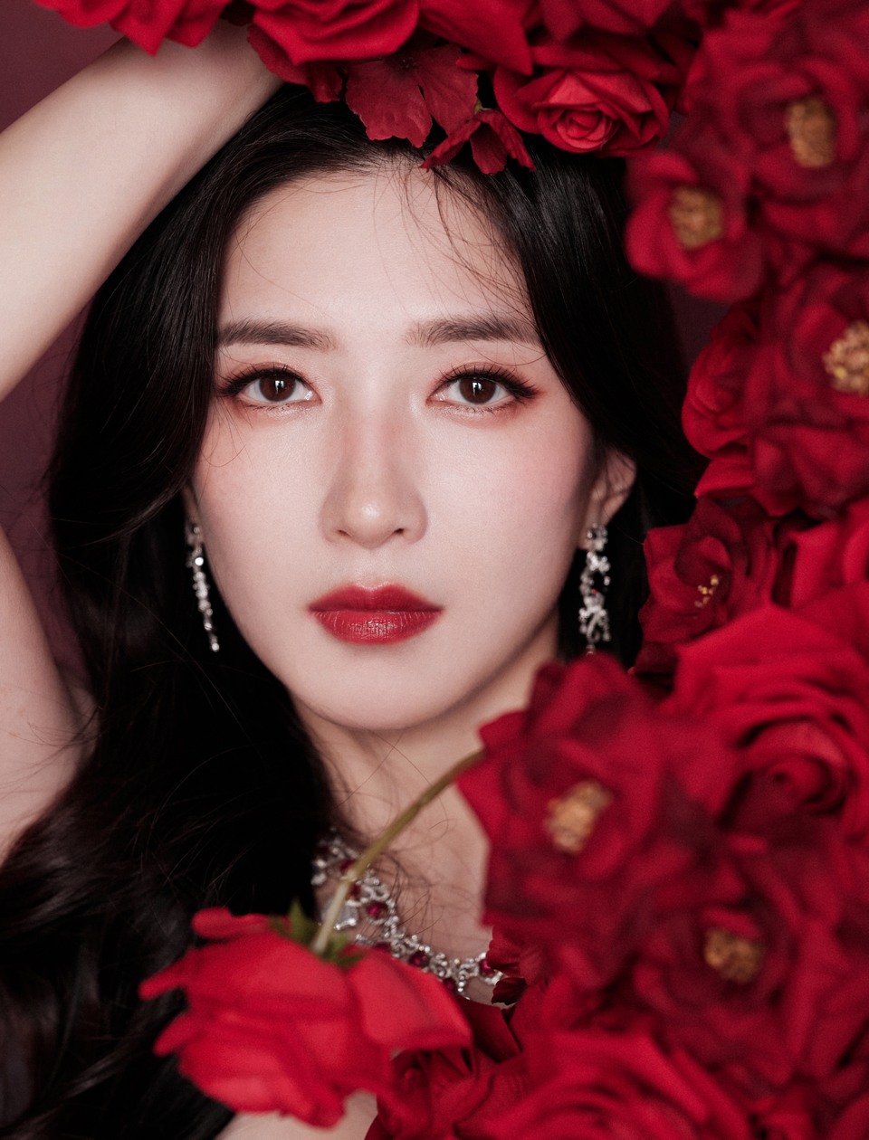 江疏影最迷人的主角 暗调背景里红玫瑰是唯一的光