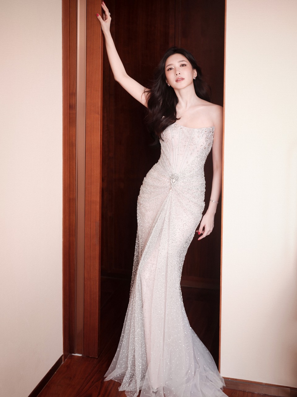 梅婷一身银色礼服华丽优雅