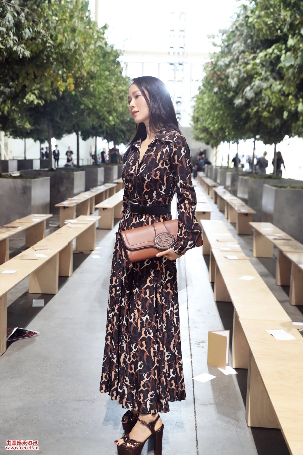 江一燕印花裙温婉大气 温柔笑颜尽显沉静典雅