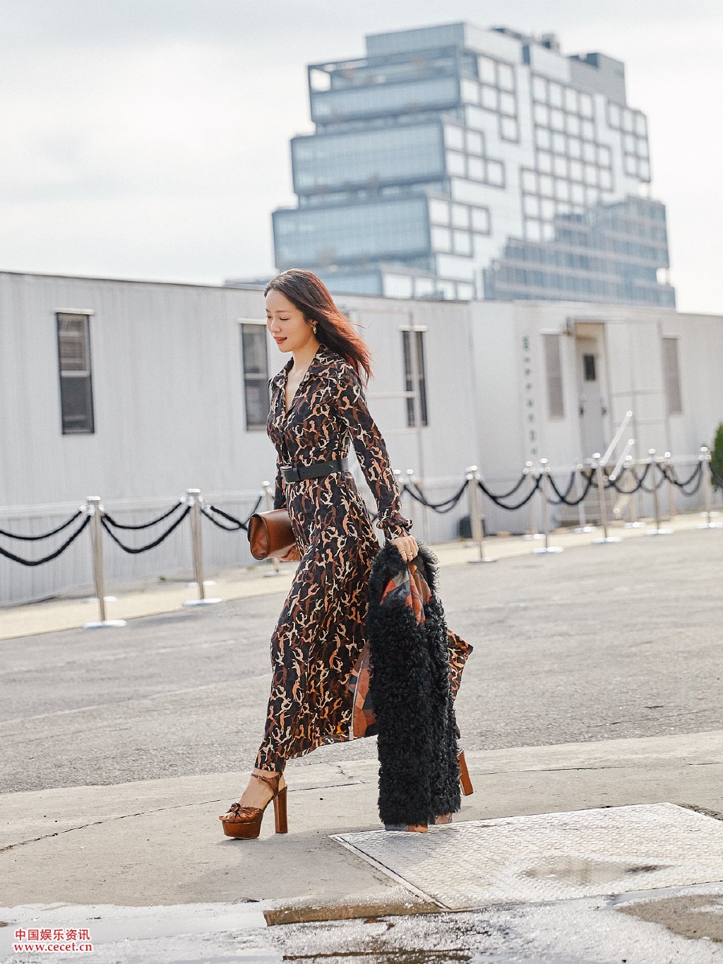 街拍的长袖紧身连衣裙