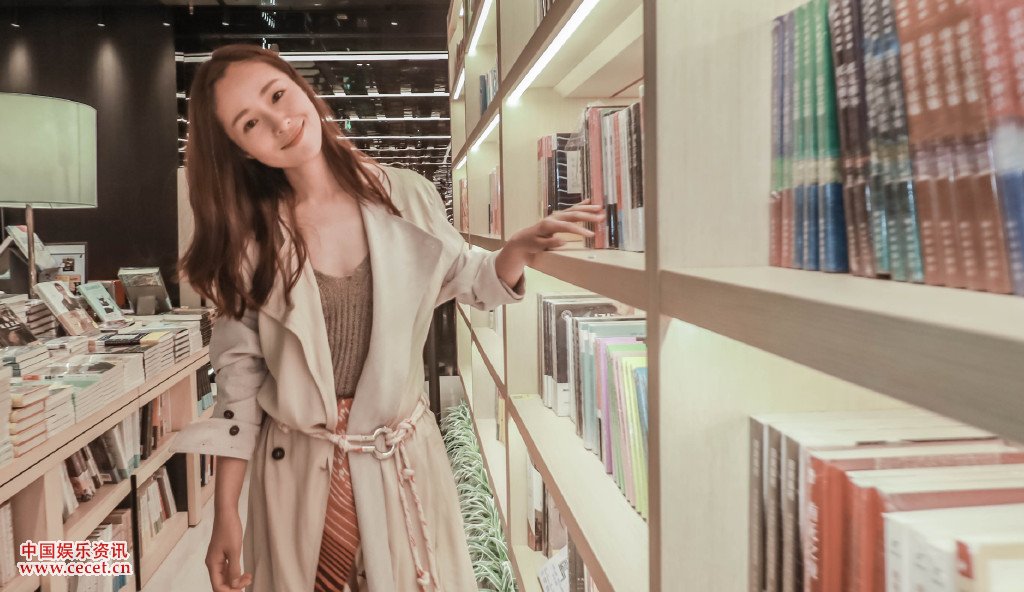 江一燕印花拼接长裙 米白风衣尽显恬静温婉