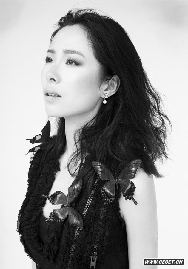 江一燕拍摄封面大片曝光 在片中与蝶共舞