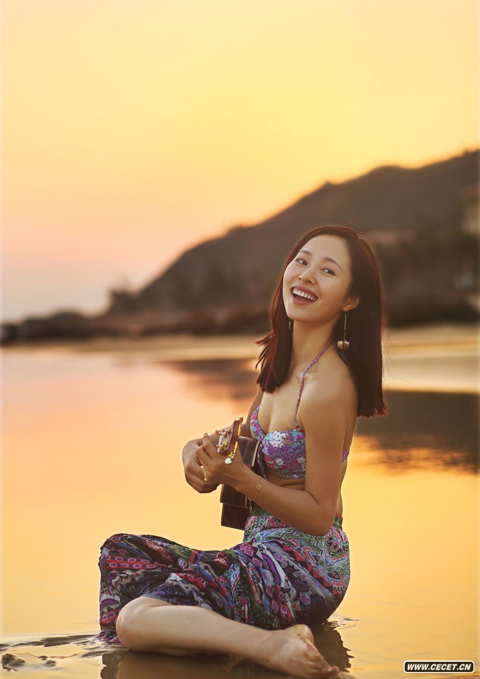 江一燕海滩素颜出镜 自弹自唱尽展才女风情