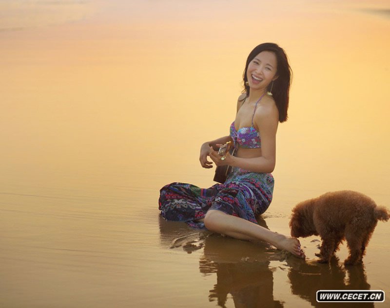 江一燕海滩素颜出镜 自弹自唱尽展才女风情