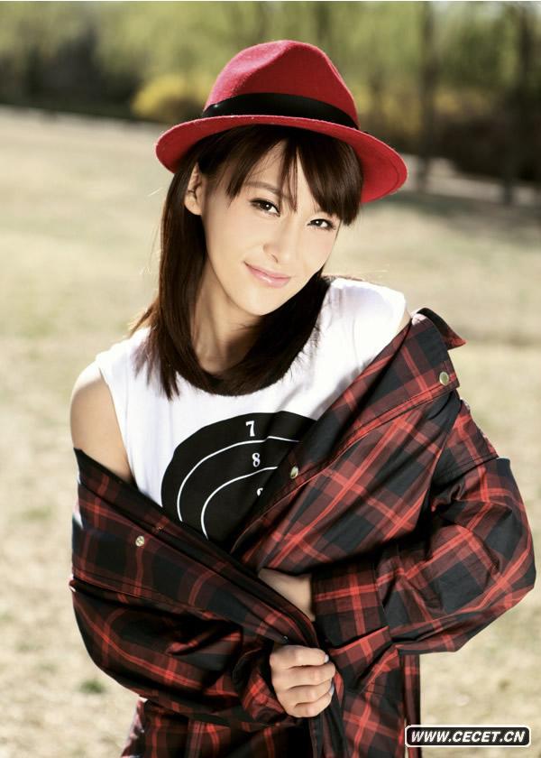 贾青夏季清凉写真 红色礼帽笑容清新可人
