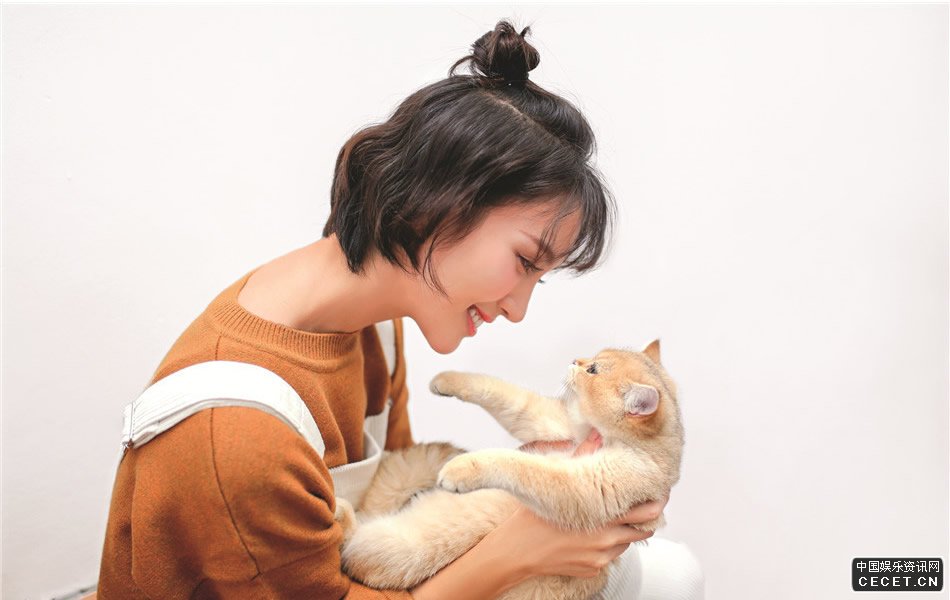 金晨靓丽清新写真曝光 与猫咪玩耍温情脉脉