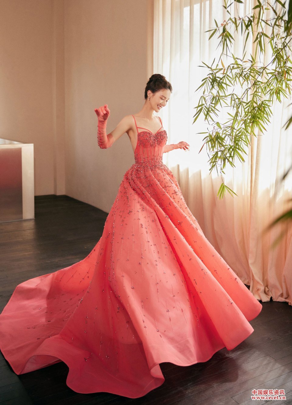 金晨身着粉红凤尾裙翩翩起舞 徜徉璀璨星海