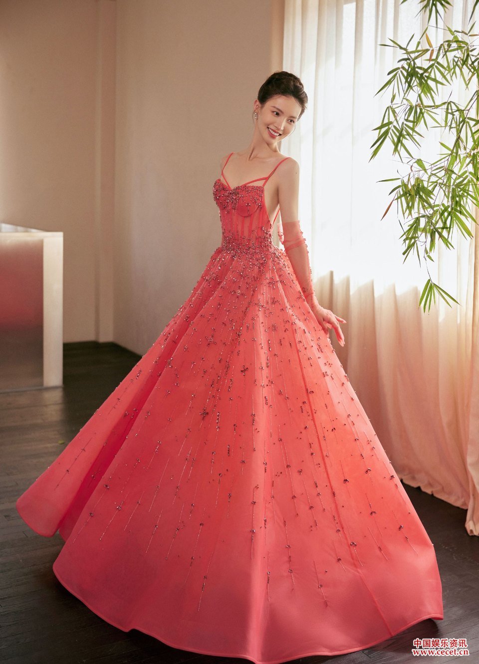 金晨身着粉红凤尾裙翩翩起舞 徜徉璀璨星海