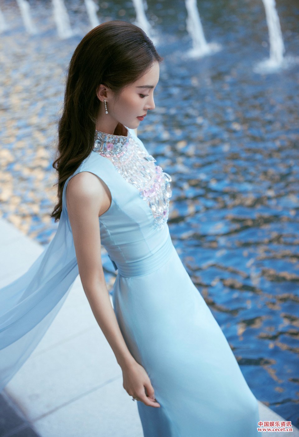 金晨一抹静谧之蓝高贵之姿 轻盈薄纱肆意飞舞