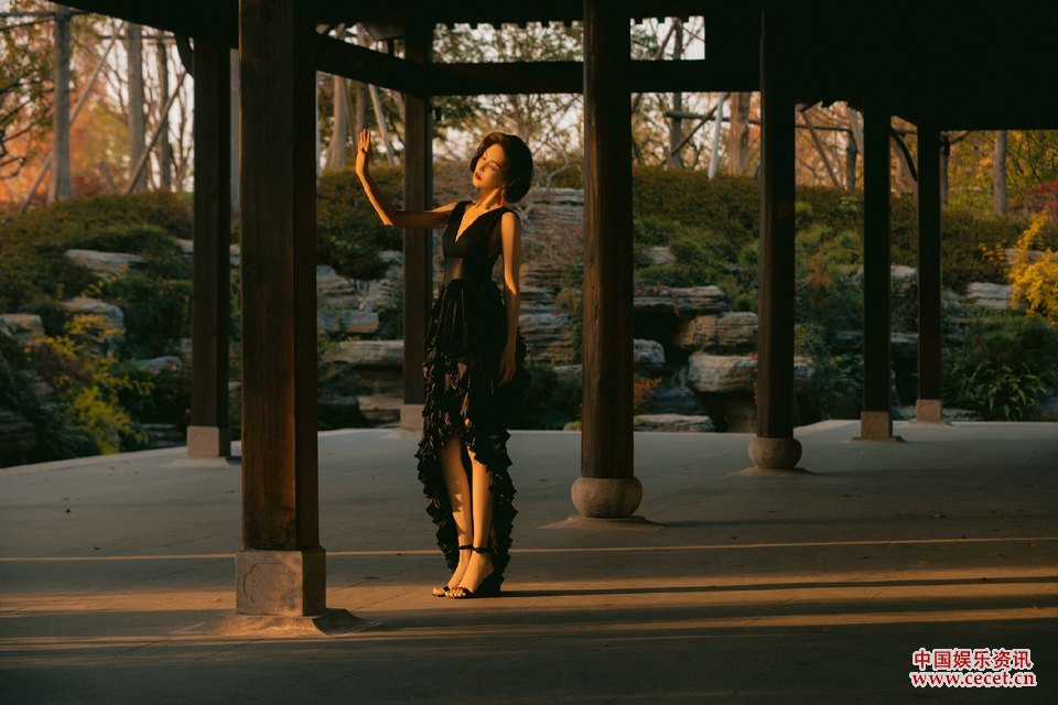 袁姗姗神秘黑定格优雅瞬间