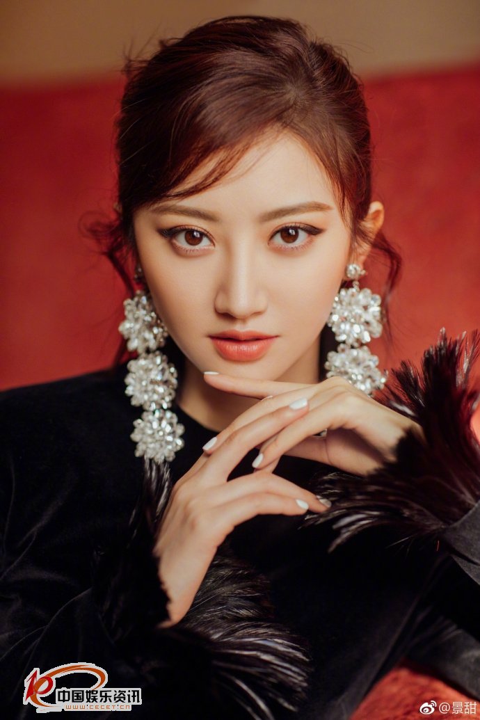 景甜短款丝绒礼服照 微烟熏妆勾勒出窈窕曲线