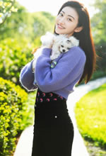 景甜怀抱爱犬对镜甜笑