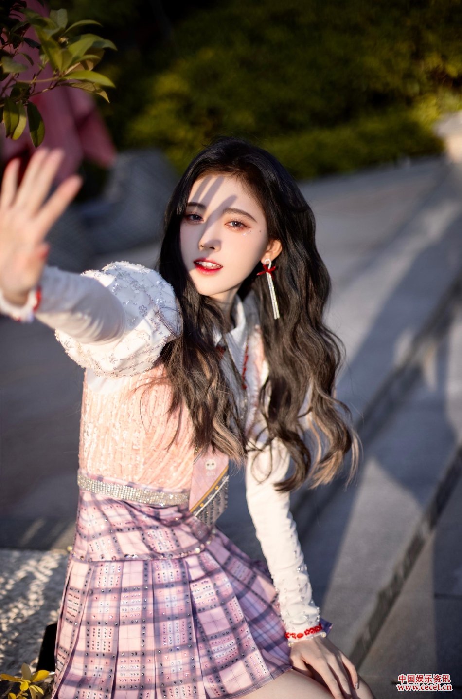 鞠婧祎宫廷风衬衫搭格子裙 化亮片妆闪闪惹人爱