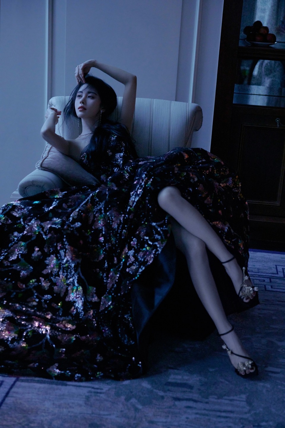 鞠婧祎光影之间眼波流转缱绻 幽雅神秘流淌