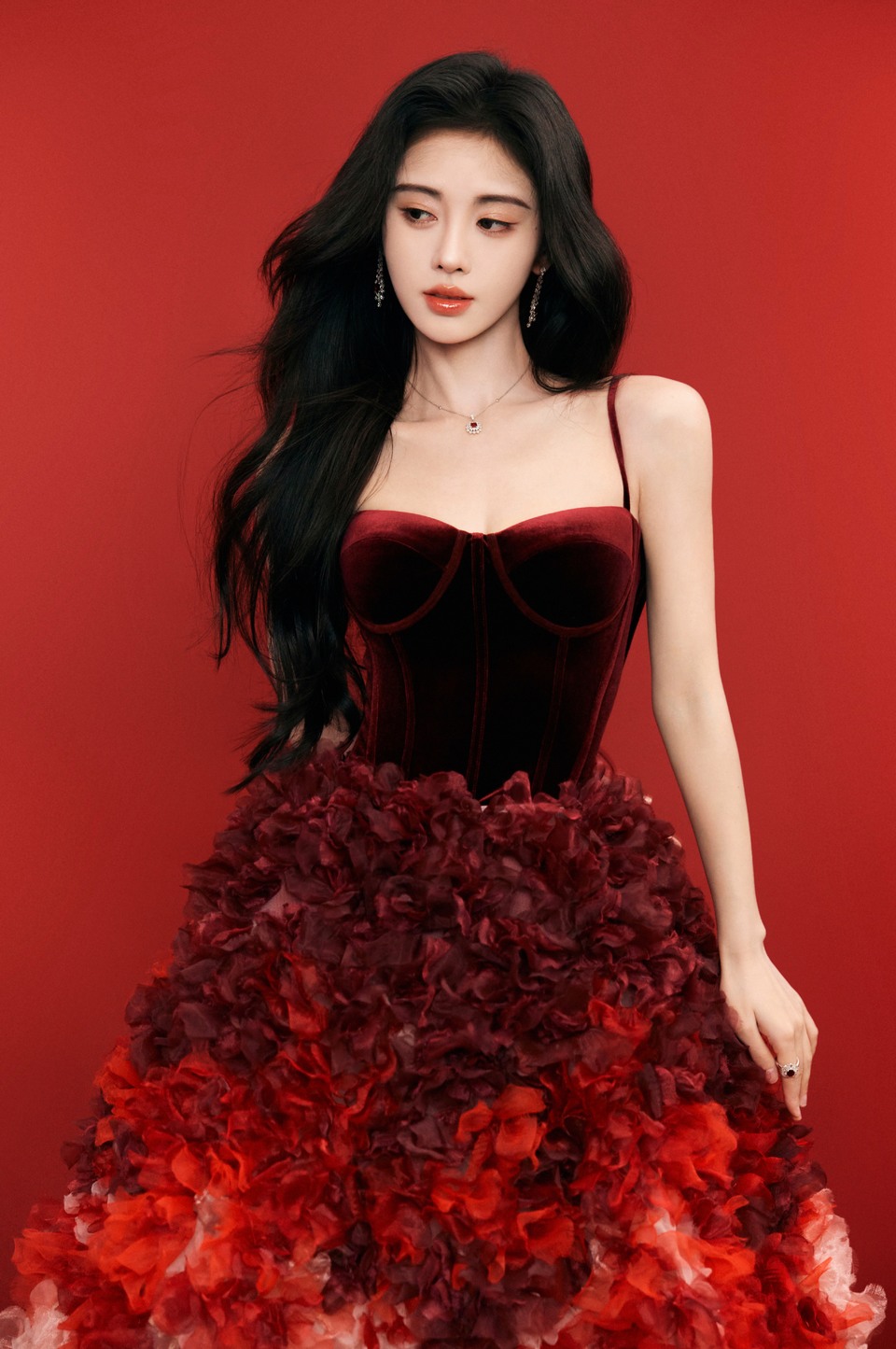 鞠婧祎焰色浓烈如坠花海梦境 烈焰红颜以心为引