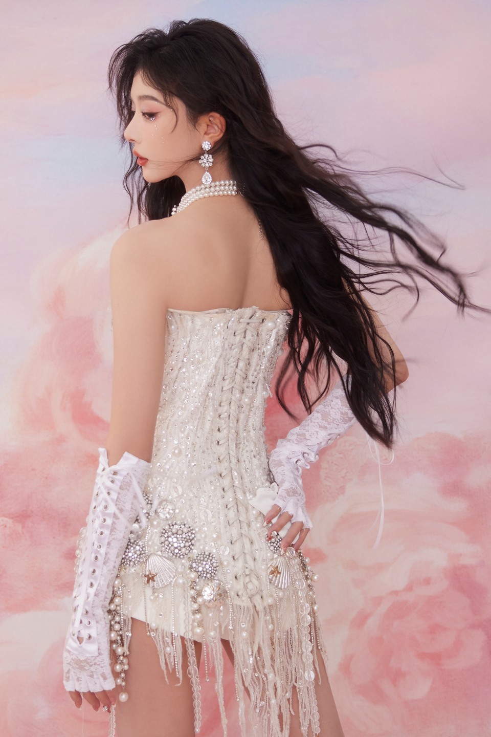 孔雪儿流光溢彩白色浪漫 裙摆摇曳如火焰般肆意