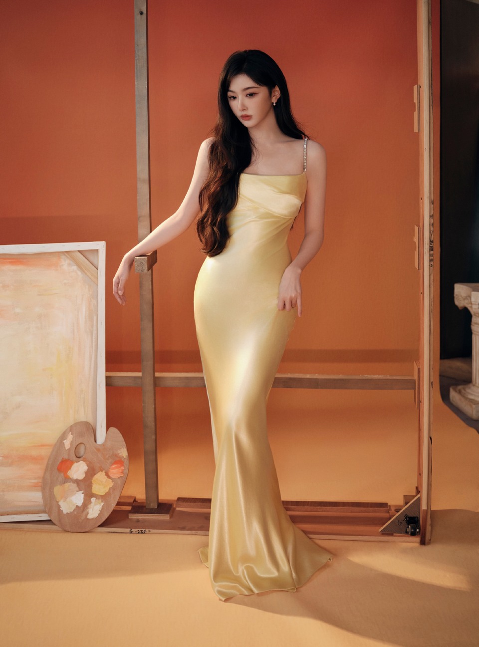 梅婷身着黑色柔软缎面跃动流光