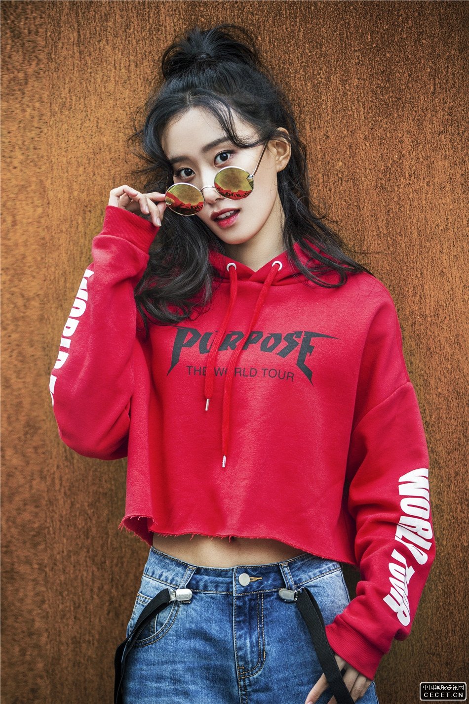 邝晓彤牛仔裤街头写真 散发着满满少女活力