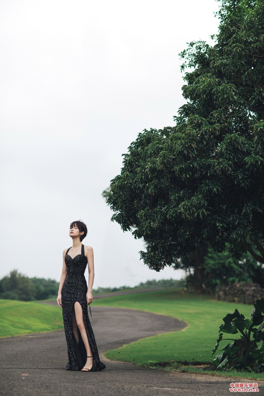 蓝盈莹一袭黑色礼服照 风姿绰约倩影撩拨