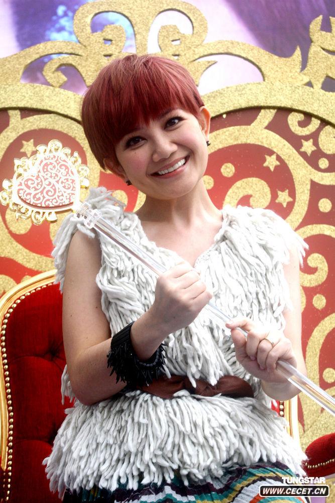 梁静茹举办新歌签唱会 剪短头发染成紫红色