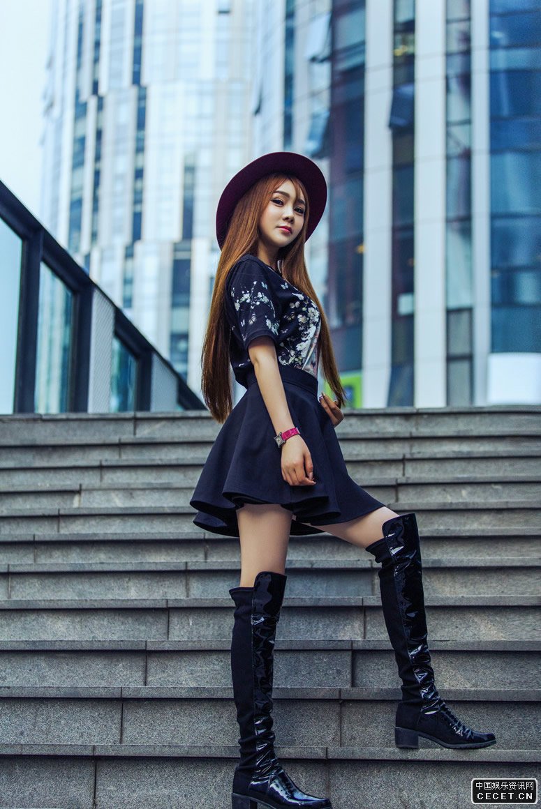 林妃媛时尚街拍大片 短裙不畏秋风大秀美腿